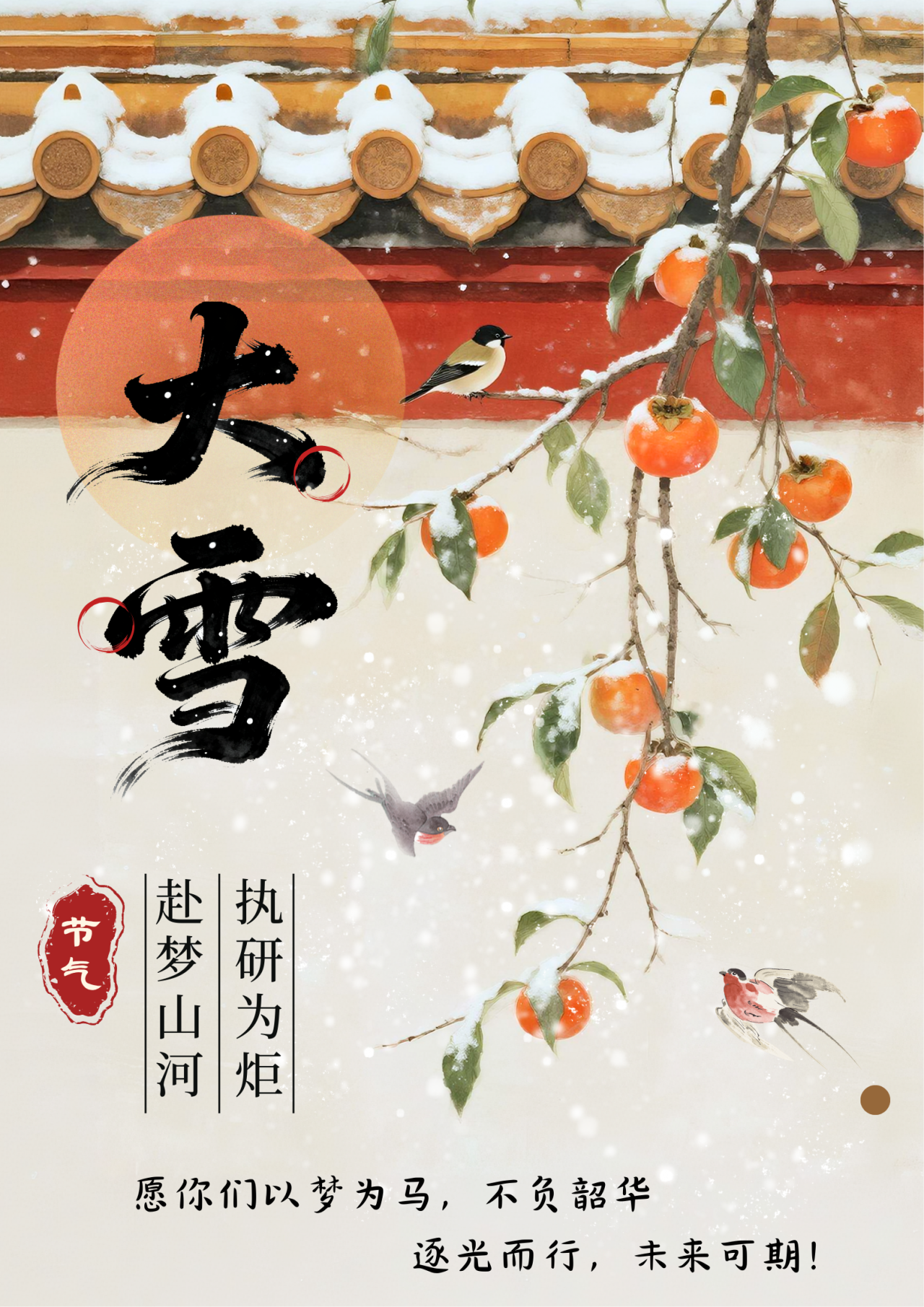 亲爱的同学们,考研的号角即将吹响,梦想的征程就在前方。今日大雪虽无雪,愿寒风为你们洗去浮躁,为你们铺路护航。作为你们的老师,我们想对你们说:愿你们以笔为剑,以梦为舟,在考场上从容作答,不负13天的冲刺,不负无数日夜的坚守;愿你们逐光前行,向阳而生,无论历经多少风雨,都能坚守心中的热爱,保持前行的勇气;愿你们带着这段旅程中收获的成长与力量,奔赴更广阔的山河,开启人生的新征程,在未来的日子里,既有追风逐梦的勇气,也有从容生活的底气,活成自己最想要的模样!