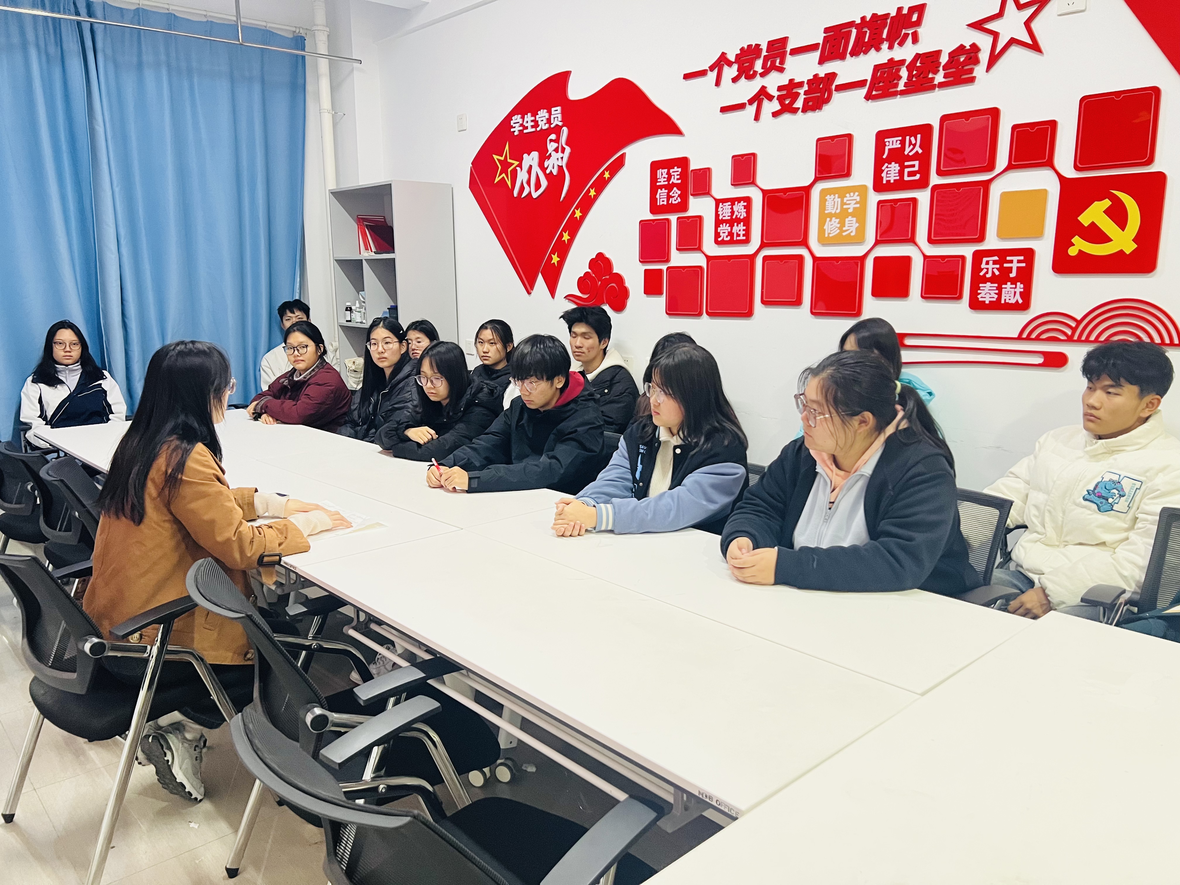 培训会上,赵慧贞结合自身工作实践,系统讲解了团支书的核心职责与工作内容。针对团日活动策划、团员发展管理、等工作,她分享了“提前规划列清单、分工协作提效率、及时沟通解矛盾”的实用技巧。会议着重强调了党团活动开展的重要性,指出团支书需以党团活动为载体,强化团员的思想政治引领,增强团组织的凝聚力,引导广大团员青年在实践中坚定理想信念、锤炼过硬本领。自由交流环节,新生团支书们围绕“如何激发团员参与活动的积极性”“党团活动与学业如何平衡”等问题积极提问。赵慧贞逐一耐心解答,结合自身经验给出具体建议,现场交流氛围热烈融洽,有效化解了新任团支书的工作困惑,为后续工作开展扫清障碍。
