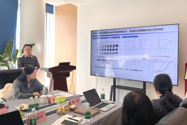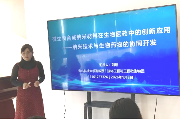仪式上,双方围绕重组蛋白质药物前沿技术开展了专题学术交流。抗体工程与工程微生物研究团队骨干教师刘培、张传亮、陈进分别就纳米递送材料、多肽药物理性设计、纳米抗体筛选与优化在蛋白质药物中的应用等研究方向作了专题报告,系统展示了团队在相关领域的创新进展与技术储备。康立泰生物医药团队从药物研发管线、工艺放大与临床转化角度出发,与校方团队进行了深入探讨。经充分交流,双方在多肽药物开发、纳米抗体工程化、新型递送系统等方向上明确了合作意向,并约定后续将通过联合课题、资源共享等方式推动具体项目落地。